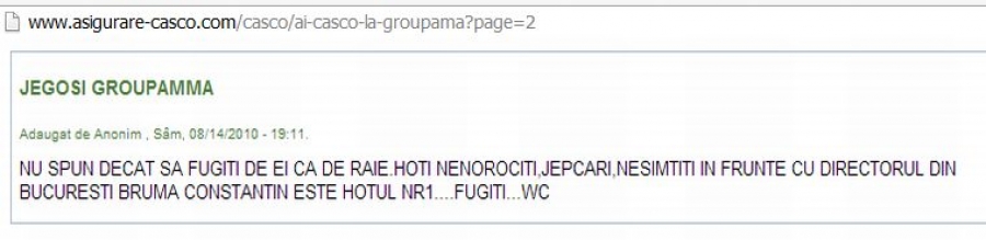 Nemultumit de Groupama - 36 12 Martie, 2013 Scris de Bogdan Stoica Publicat în Groupama Citit 6718 ori dimensiune font scade mărime font creşte dimensiunea fontului Ultima modificare Miercuri, 20 Martie 2013 09:27 Evaluaţi acest articol 1 2 3 4 5 (0 voturi) Tweet Mai multe din această categorie: « Nemultumit de Groupama - 35 Nemultumit de Groupama - 37 »